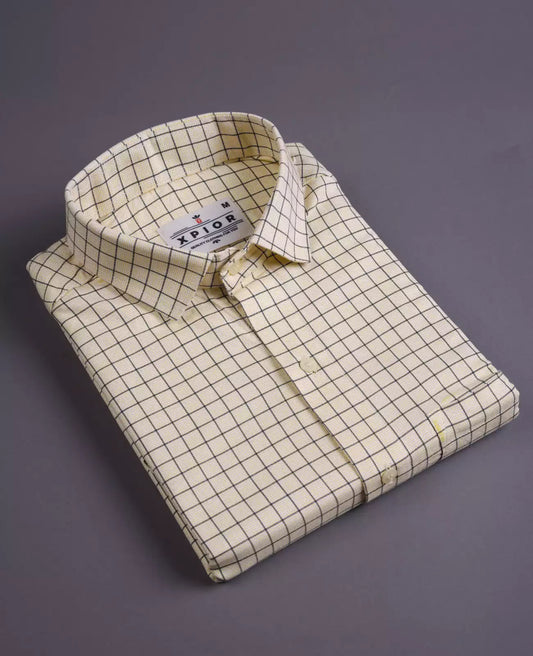 Men's Full Sleeves Square Pattern Shirt Premium Collection Cotton Fabric