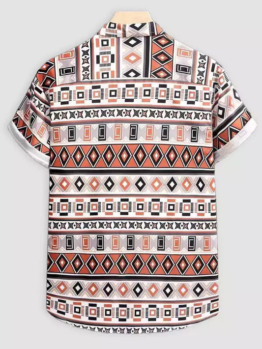 Orange Trianlge Design Beach and casual Multicolor Printed Shirt Cotton Material Half Sleeves Mens blackdock