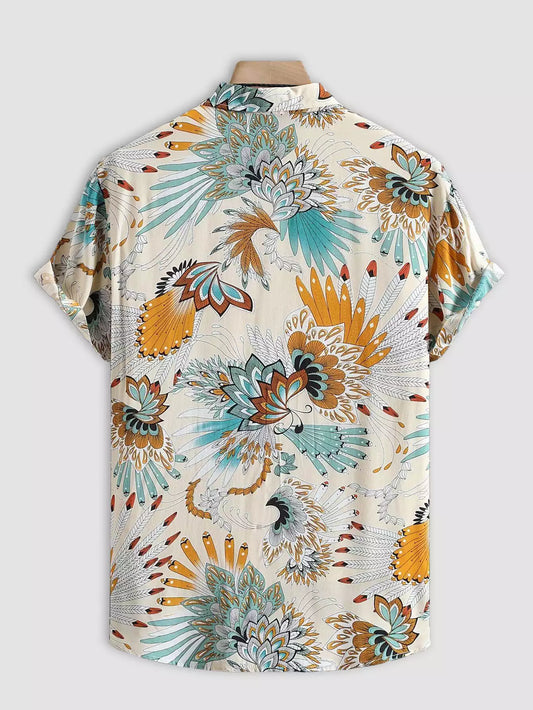 Peacock Feather Design Beach and casual Multicolor Printed Shirt Cotton Material Half Sleeves Mens blackdock