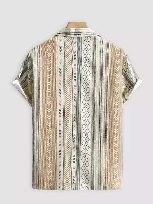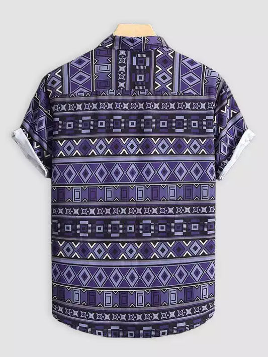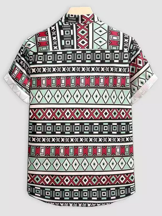 Milumia Geo Print Button Down Shirt for Men Short Sleeve Collar Regular Fit Shirt