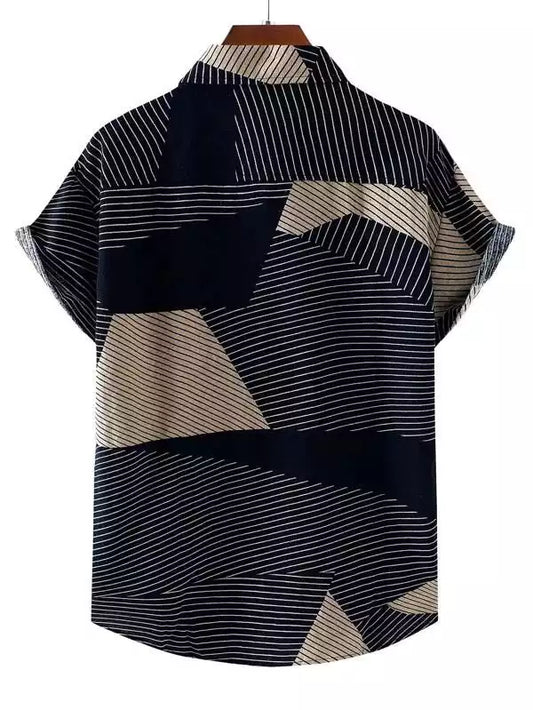 Texture Line Blue Color Beach and casual Multicolor Printed Shirt Cotton Material Half Sleeves Mens blackdock