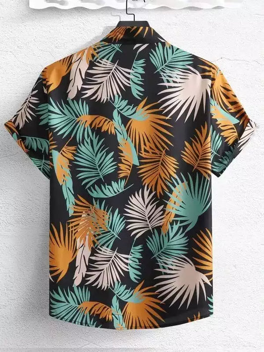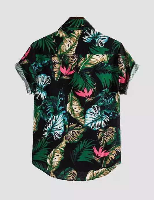 Tender Leaves Pattern Printed Black Color Beach Mens Cotton Shirt Half Sleeves Available only in RoscoeShirts
