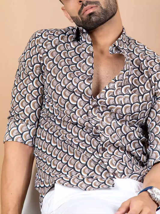 Tender Pattern printed Brown Color Men's Cotton Casual Shirt Half Sleeve available on RoscoeShirts