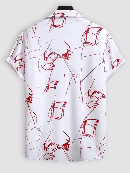 White and Red Design Beach and casual Multicolor Printed Shirt Cotton Material Half Sleeves Mens blackdock
