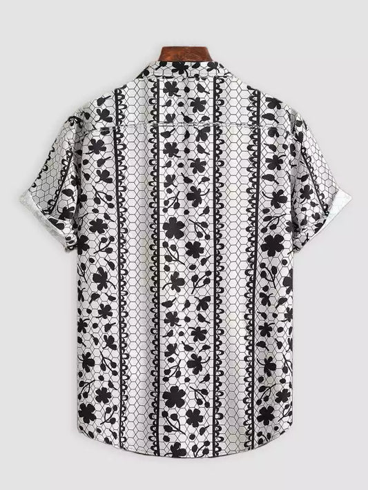 White Flower Pattern Beach and casual Multicolor Printed Shirt Cotton Material Half Sleeves Mens blackdock