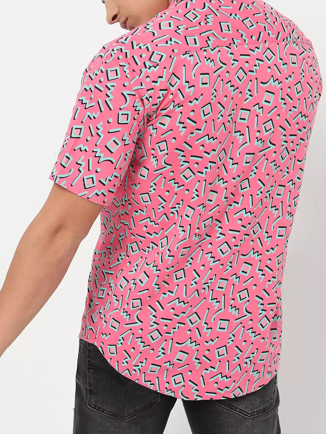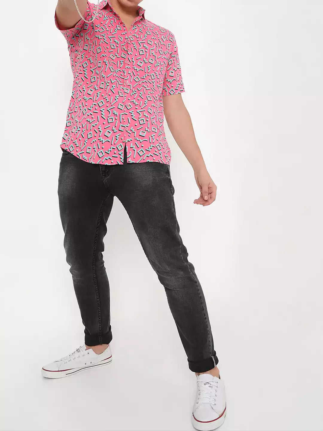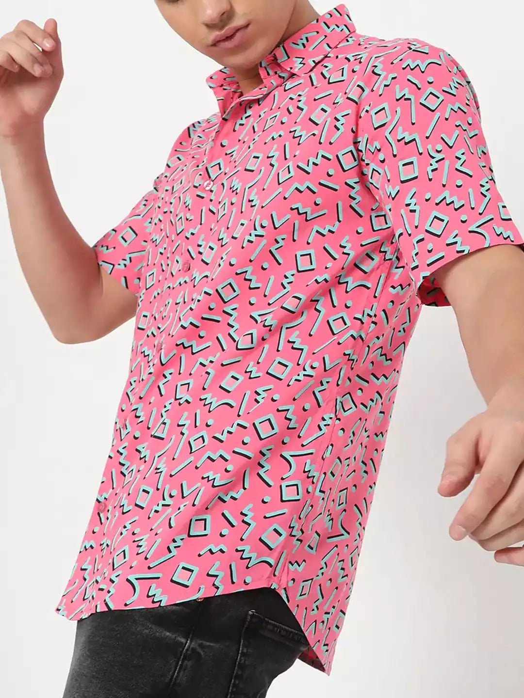Abstract Printed Pink Color Men's printed Cotton Casual Shirt Half Sleeve available on RoscoeShirts