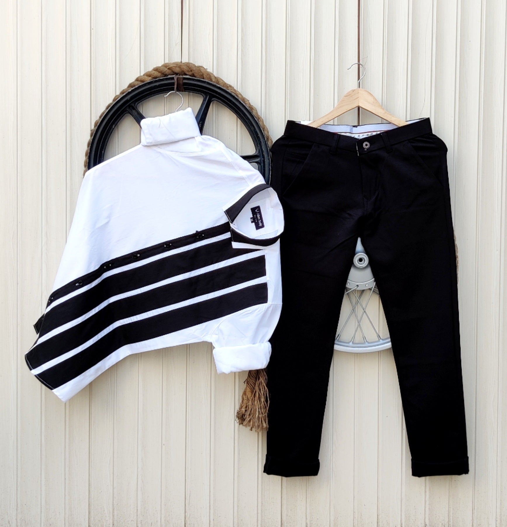PATTERN:- Full sleeves designer shirt and 4 WAY LYCRA PENT in awesome color