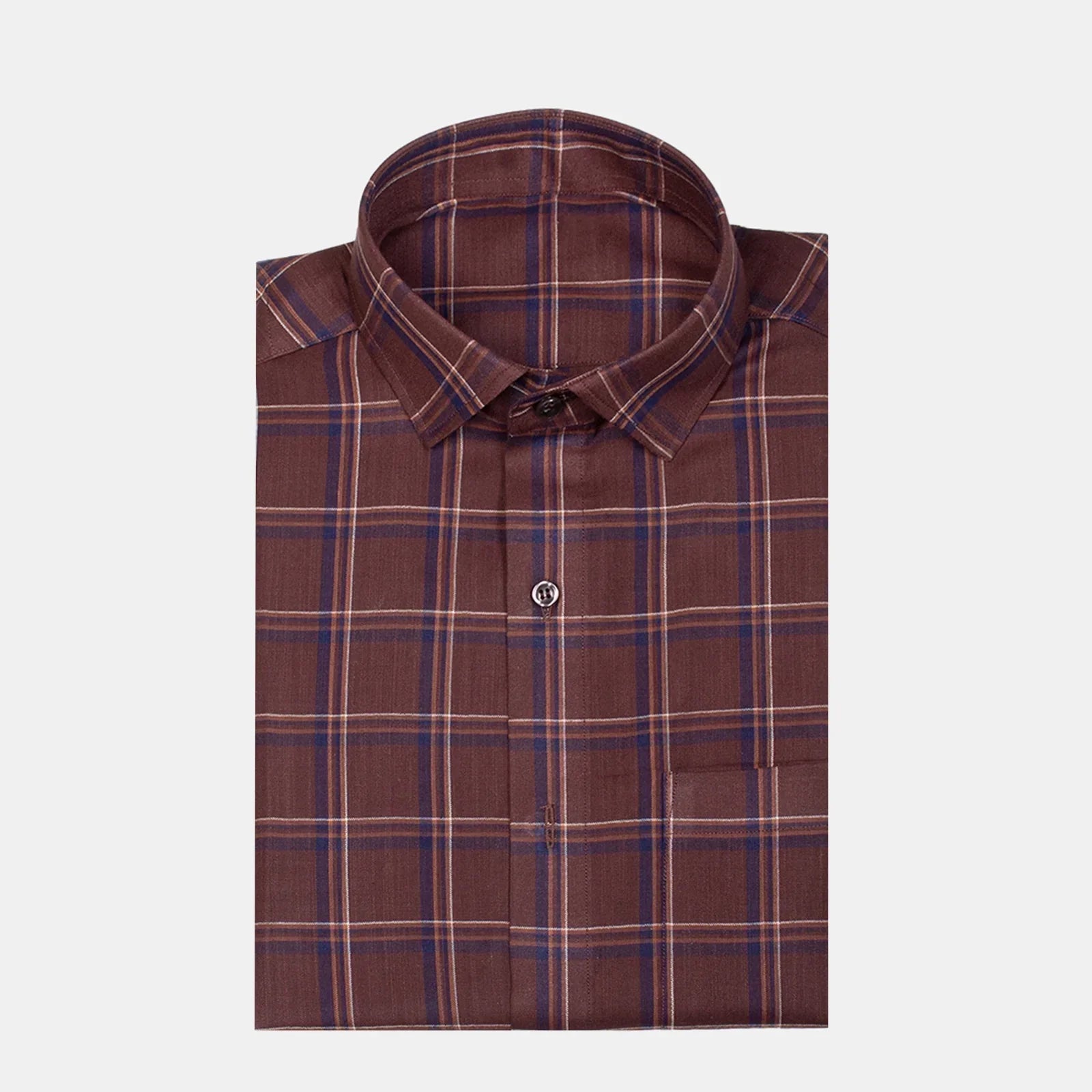 Men's Full Sleeves Checks Shirt Premium Collection Cotton Fabric Brown Color