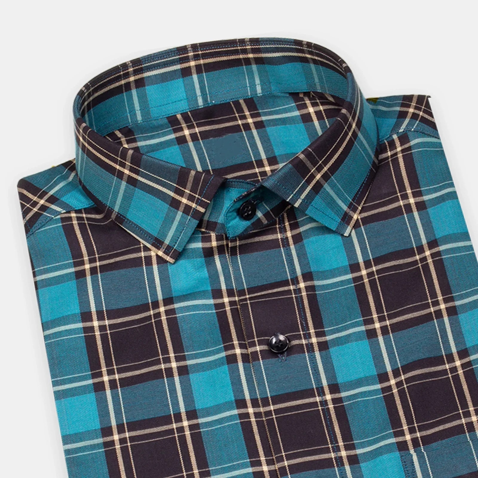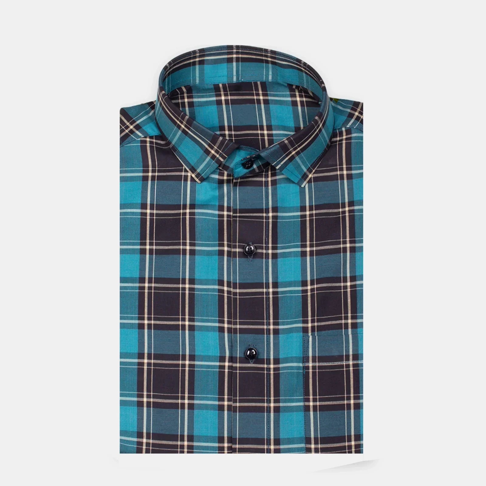 Men's Full Sleeves Checks Shirt Premium Collection Cotton Fabric English Blue Color
