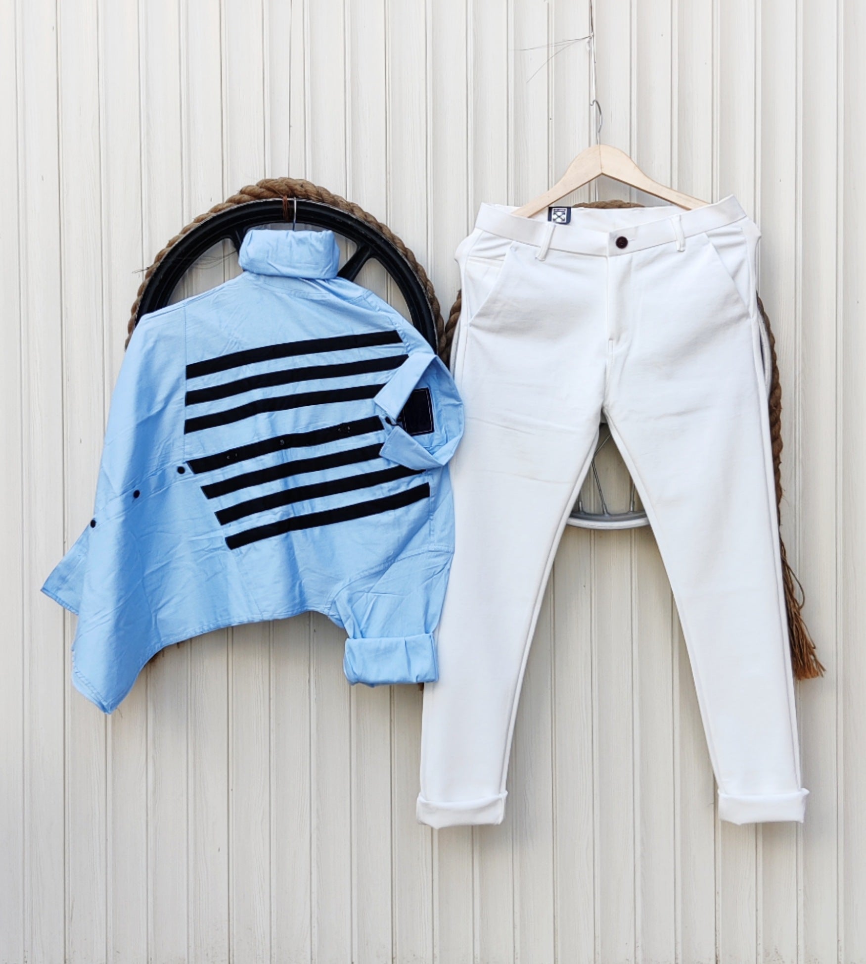 PATTERN:- Full sleeves designer SHIRT and 4 WAY LYCRA PANT in awesome color
