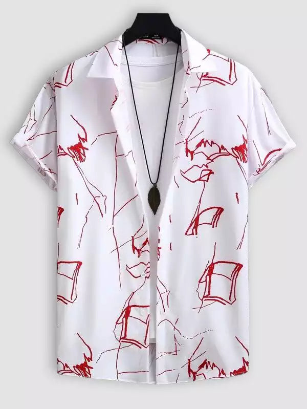 White and Red Design Beach and casual Multicolor Printed Shirt Cotton Material Half Sleeves Mens blackdock