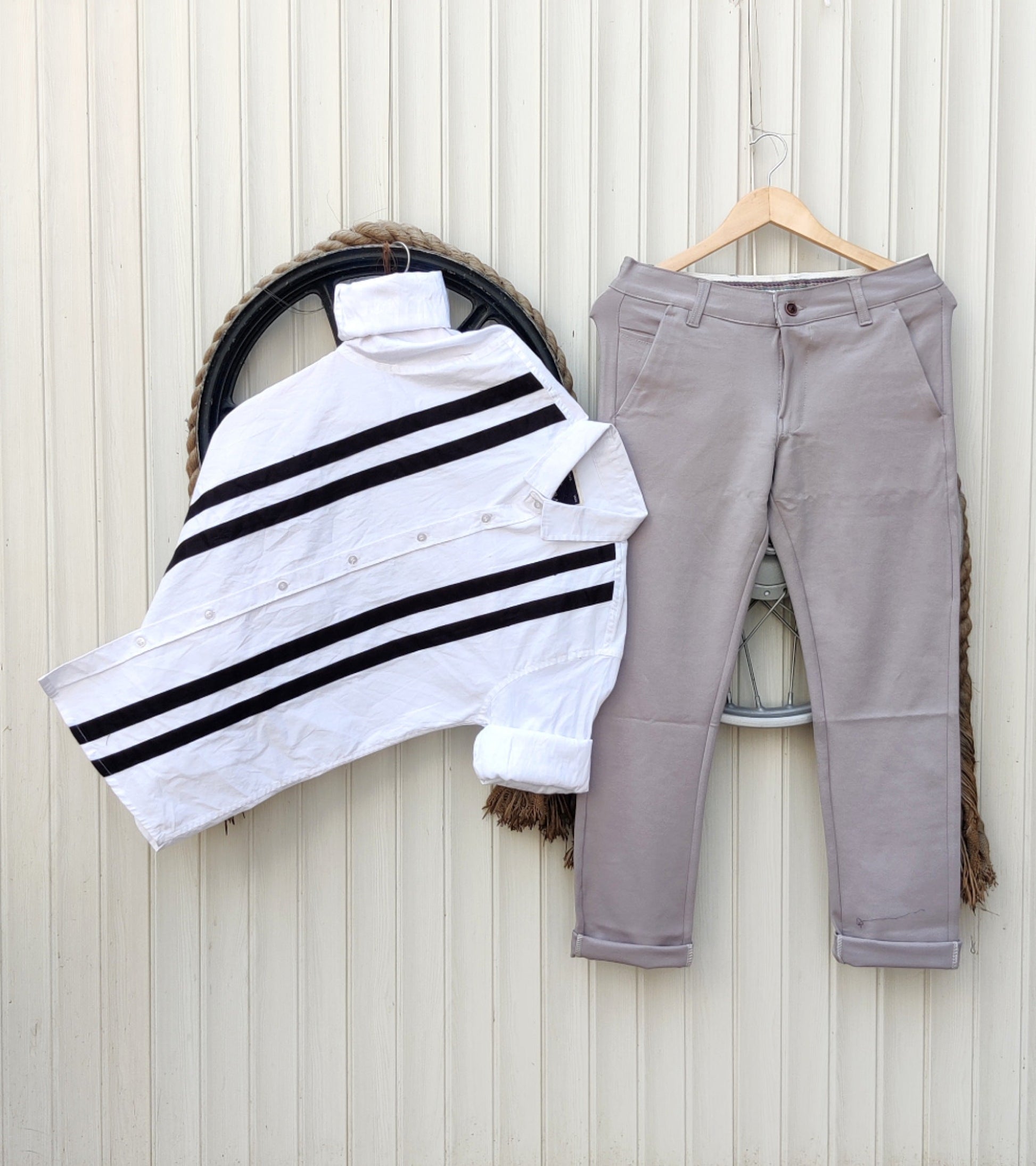 PATTERN:- Full sleeves designer shirt and 4 WAY LYCRA PENT in awesome color